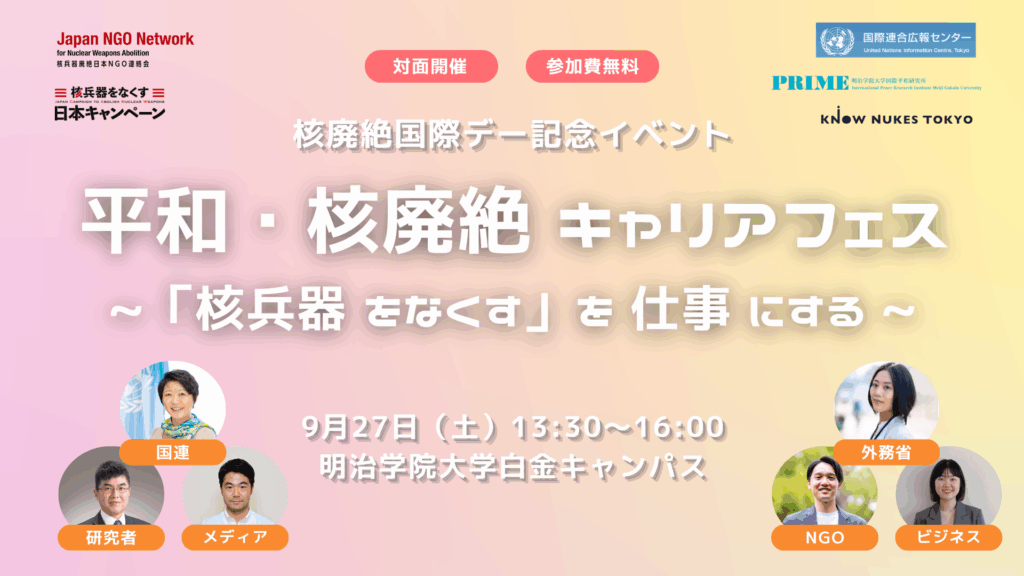 【9月27日13:30〜】核廃絶国際デー記念イベント「平和・核廃絶キャリアフェス〜「核兵器をなくす」を仕事にする 〜」