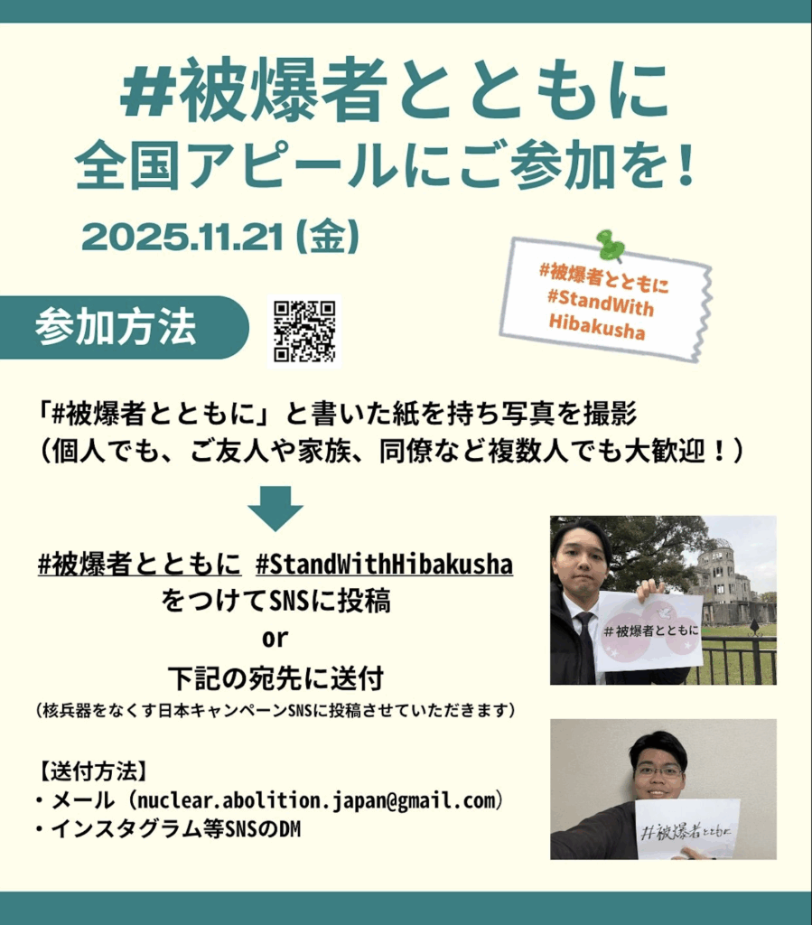 11月21日は、写真を撮って「#被爆者とともに 全国アピール」にご参加を!