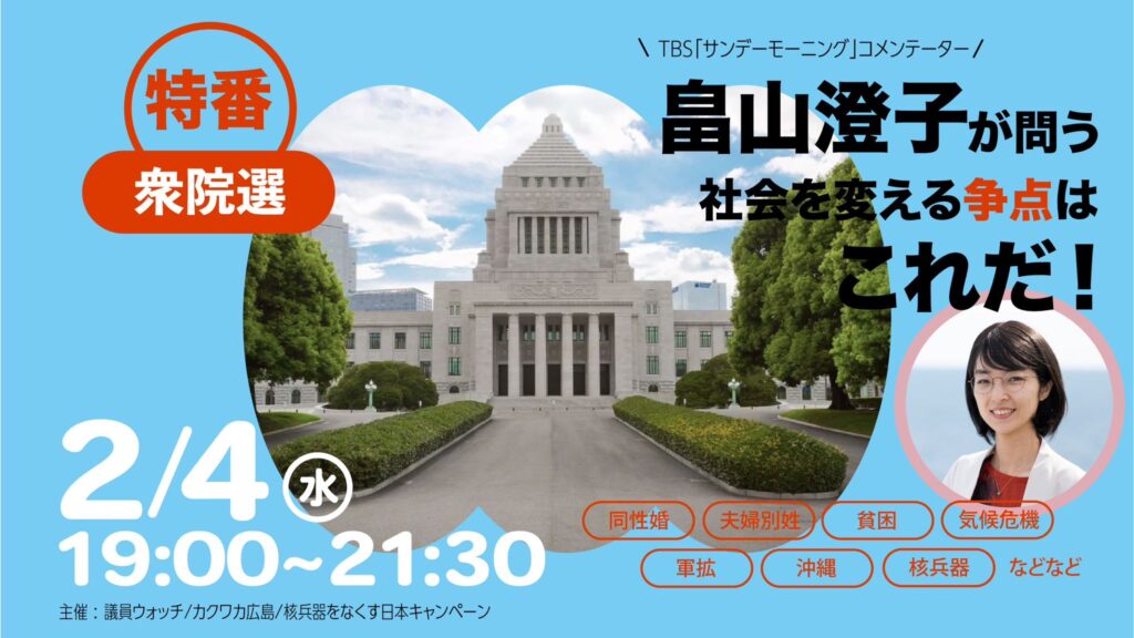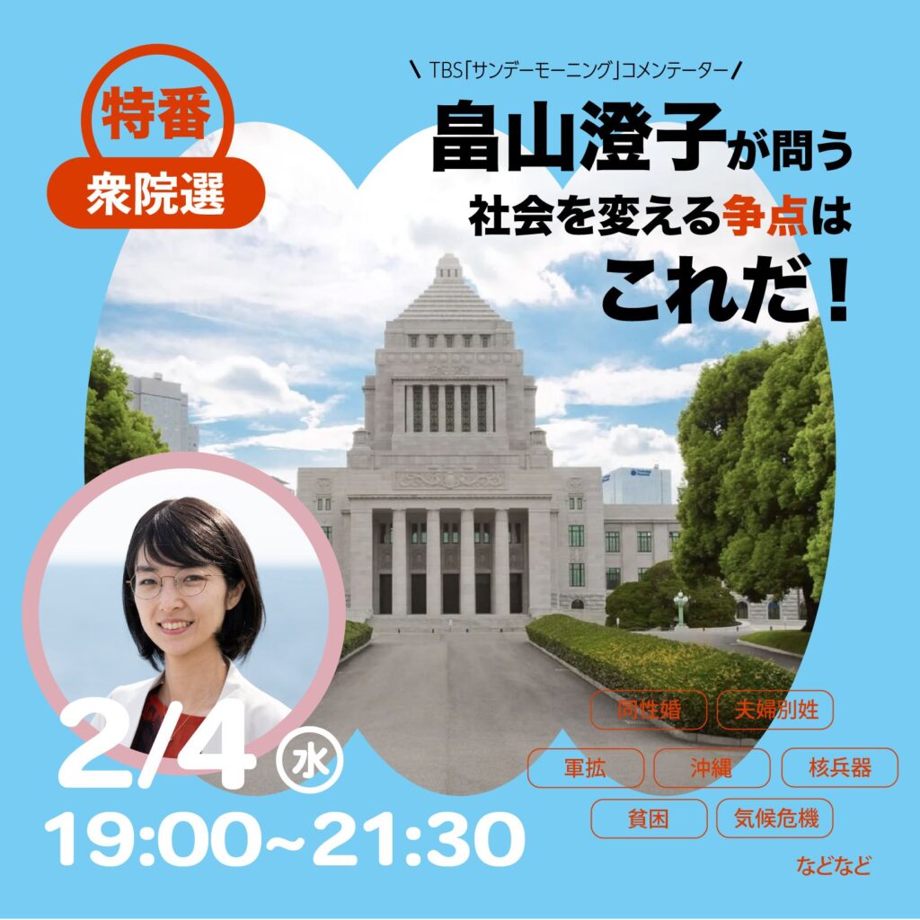 【2月4日19:00~】畠山澄子が問う 社会を変える争点はこれだ ~2026衆院選~